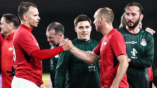 За другую команду играли экс-футболисты "Спартака" ХИМКИ /Московская область/, 11 октября. /ТАСС/. Бывшие футболисты московского "Локомотива" со счетом 1:0 обыграли экс-игроков столичного "Спартака" в прощальном матче Дениса Глушакова. Встреча прошла на "Арене-Химки". Мяч забил Динияр Билялетдинов, реализовав пенальти. Глушаков провел по тайму за "Локомотив" и "Спартак". В матче также приняли участие олимпийские чемпионы легкоатлет Юрий Борзаковский, фигурист Евгений Плющенко, лыжник Александр Легков и гимнаст Никита Нагорный...