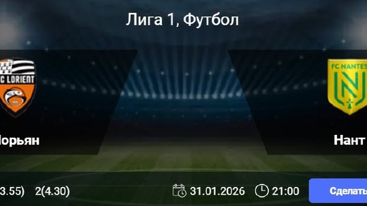 Статистика Лорьяна: В четырех из пяти последних игр «Лорьяна» в чемпионате было забито не более двух мячей. На домашней арене команда не проигрывает на протяжении семи матчей подряд в Лиге 1, одержав три победы и четырежды сыграв вничью. В семи из восьми предыдущих домашних встреч «Лорьяна» в чемпионате обе команды отмечались забитыми голами. Статистика Нанта: «Нант» одержал лишь одну победу в десяти предыдущих матчах Лиги 1, потерпев семь поражений и дважды сыграв вничью...