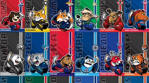Маскоты всех команд КХЛ.