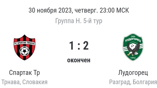 Привет друзья. Давайте рассмотрим последний матч игрового дня в пятом туре группового этапа Лиги конференций. В городе Трнава в Словакии местный Спартак принимал Лудогорец. Соперниками этих команд по группе являются Норшелан из Дании, а также Фенербахче представляющий Турецкую Суперлигу. Перед очным противостоянием Лудогорец и Спартак Трнава занимали последние два места в квартете H. Болгары набрали шесть очков. У клуба из Словакии на счету всего лишь один балл. Расположение команд в турнирной таблице...