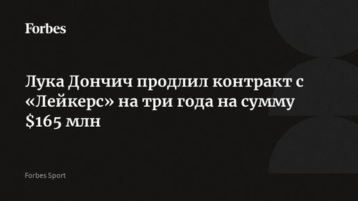 Звезда «Лос-Анджелес Лейкерс» Лука Дончич согласился на продление контракта на три года на максимальную сумму в $165 млн с опцией игрока (право расторгнуть соглашение на год раньше) в 2028 году, сообщил ESPN агент баскетболиста Билл Даффи. Дончич может отказаться от контракта в 2028 году и подписать новое пятилетнее соглашение на $417 млн. «Лейкерс» уже официально объявили о продлении контракта с Дончичем, но не раскрыли условий. «Я очень благодарен руководству «Лейкерс», моим товарищам по команде и болельщикам за то, что с первого дня они оказали мне и моей семье такую поддержку и доброту...