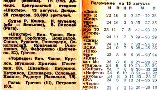 "... игрок "Днепра" Лысенко головой сбросил мяч на ногу торпедовцу Васильеву. Тут же последовал удар! ...". 1981 год