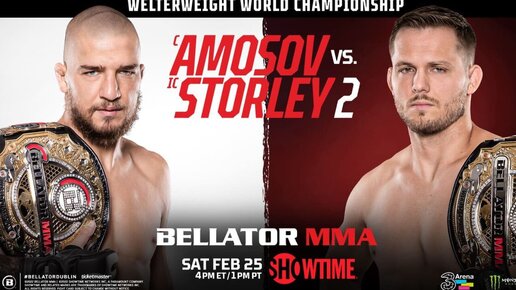 В Дублине (Ирландия) 25 февраля прошел турнир Bellator 291. В главном событии вечера состоялся бой чемпиона полусреднего веса Ярослава Амосова (27-0) и Логана Сторли (14-2). Амосов победил единогласным решением судей и защитил пояс. Хасан Магомедшарипов (8-0) победил Рафаэля Хадсона (6-5) техническим нокаутом в первом раунде. В Bellator он идет на серии из трех побед. Другие бои: Педро Карвальо (12-7) vs Джереми Кеннеди (19-3). Победа Кеннеди единогласным решением судей; Питер Куилли (13-8-1) vs Брайс Логан (13-7)...