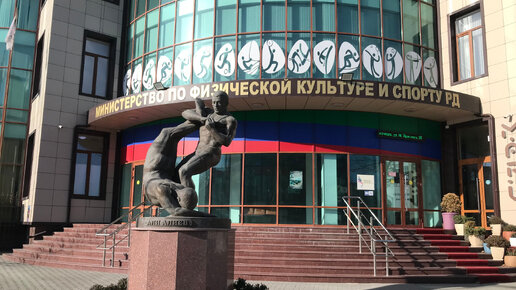 Памятник пятикратному Чемпиону мира по вольной борьбе Али Алиеву установлен в Махачкале на улице Магомеда Ярагского рядом со зданием министерства спорта республики Дагестан. Автор — заслуженный художник России, заслуженный деятель искусств Дагестана Али Магомедов. Композиция является точной копией им же созданного памятника Алиеву, установленного в 2011 году в штаб-квартире Объединенного мира борьбы в швейцарском городе Лозанна. Бронзовый памятник весом около двух тонн и высотой 2,80 см покоится на полутораметровом гранитовом постаменте...