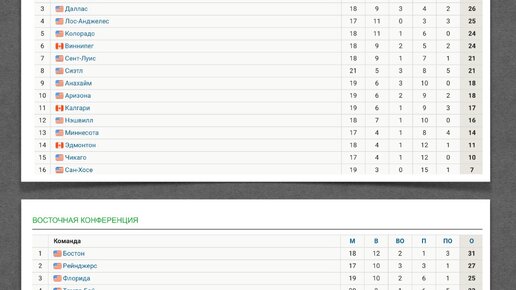 Турнирная таблица НХЛ перед матчем всех звёзд