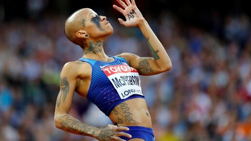 Легкоатлетка Иника Макферсон, произвела фурор на чемпионате мира 2017 и не только благодаря своей оригинальной внешности, а буквально поразив болельщиков и специалистов своим результатом. Ни кто из тренеров, не ожидал от неё 4-го места на соревнованиях. Выглядит спортсменка из США и вправду, очень оригинально, но, вот её рост всего 163 сантиметра и результаты которые она показывает в секторе для прыжков в высоту, граничат с фантастикой. В России, к примеру, её бы сразу забраковали и даже ради смеха не дали бы попробовать себя в этой дисциплине...