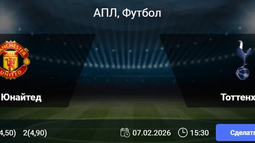 Статистика Ман Юнайтед: Текущая беспроигрышная серия команды в АПЛ насчитывает семь матчей (четыре победы и три ничьи). Ставка «обе забьют» сыграла в 10 из 12 последних поединков манкунианцев в чемпионате. В родных стенах команда не знает поражений на протяжении шести встреч кряду, одержав три победы при трех ничьих. Статистика Тоттенхэма: Обмен голами был зафиксирован в пяти последних играх столичного клуба в Премьер-лиге...