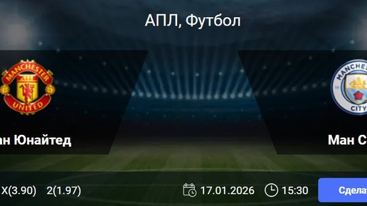 Ман Юнайтед - Ман Сити: прогноз на матч 22-й тур АПЛ