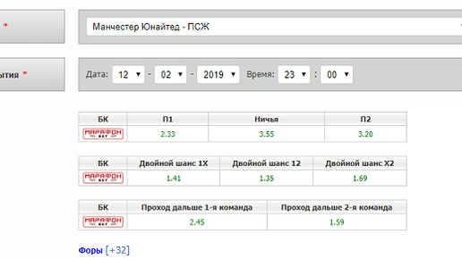 Манчестер Юнайтед : ПСЖ(12 февраля) - прогноз на матч