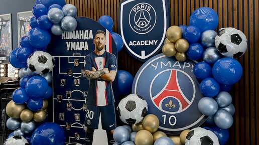 Недавно мы оформляли очень крутой праздник! Мы сняли спортивный манеж в Лужниках, которая оформлена в стиле Пари Сен-Жермен. Мы добавили свой декор, и вот что получилось! Кстати, обратите внимание на фотозону — мы сделали фон в виде футбольного поля, где разместили фотографии Умара и его гостей. В одной из зон у нас шёл фильм про именинника, тут мы поставили фигуры Холланда и Роналду. В манеже проходили спортивные игры с нашими аниматорами, а затем у ребят была тренировка с тренерами Пари Сен-Жермен и матч — гостей как раз хватало на две команды...