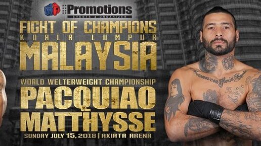 15 июля в Малайзии на Axiata Arena, Kuala Lumpur состоится поединок между филиппинской Легендой Бокса Мэнни Пакьяо и аргентинским нокаутером Лукасом Маттиссе.