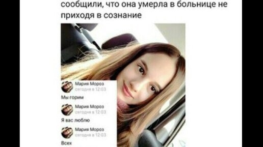 Мария Мороз ,которая ранее писала в Беседе Вконтакте : "Мы горим" ,"Возможно прощайте" найдена живой..в очень тяжелом состоянии. По не официальным данным ,число погибших может превысить 400 человек , #Кемерово ...