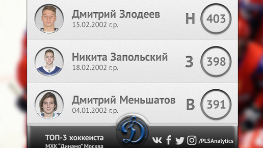 Рейтинг ТОП-3 хоккеиста (МХЛ | 07.10.2020 г. | МХК "Динамо" Москва - ХК "амурские тигры" Хабаровск).