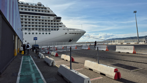 Мы на корабле. Как и собирались - пришли пешком до порта от железнодорожного вокзала. Шли тридцать минут по дороге, которая потихоньку спускалась к морю. И опять мы решили, что Марсель это "не наш город". Шумно. Грязно. И главное это запах мочи. Бррррр (простите, но это правда жизни). Вроде бы красивые дома, но хочется поскорее убежать, спрятаться от этого всего. Уже около входа в порт увидели молодую пару. Они что-то спрашивали у французов. Но диалог никак не получался. Саша увидел у них документы на круиз...