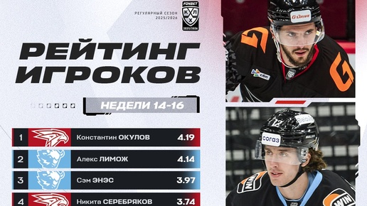 Комиссия по определению лучших хоккеистов на основании статистических данных, предоставленных отделом статистики Центрального информационного бюро КХЛ, и аналитической оценки определила лауреатов шестнадцатой недели Фонбет Чемпионата КХЛ сезона 2025/2026 в четырёх номинациях. На прошедшей календарной неделе состоялось 18 игр, в которых приняли участие 475 хоккеистов (32 вратаря, 156 защитников и 287 нападающих). Средняя результативность 6,11 шайбы за игру. - лучшим вратарем пятый раз в карьере признан Даниил Исаев («Локомотив»), одержавший одну победу в двух матчах с коэффициентом надежности 0,48...