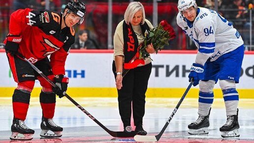 Мать Алексея Черепанова вбросила шайбу перед матчем омского «Авангарда» и московского «Динамо»