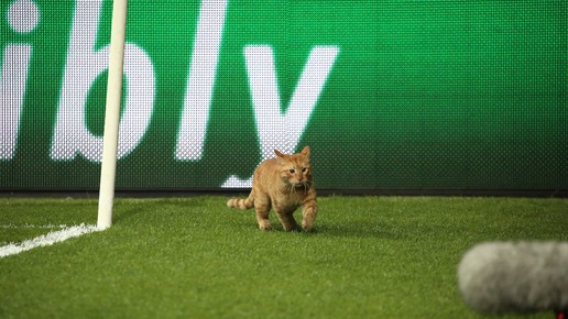На 49 минуте ответного матча между "Бешикташем" и "Баварией" произошла курьезная ситуация - на поле появился кот. При чем он был достаточно упитанным и рыжим, наглости ему не занимать. Животное сразу же привлекло внимание видеооператоров. К сожалению хвостатый не долго пробыл в объективах телекамер, поскольку его появление можно занести в список "самых интересных событий матча". Сам же футбольный поединок завершился победой гостей из Германии со счетом 3:1...