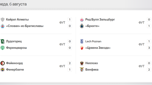 Обзор матчей квалификации Лиги чемпионов за 6 августа