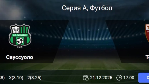 ⚽️ Сассуоло - Торино: матч 16-го тура Серии А