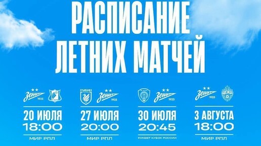 «Зенит» поделился летним расписанием матчей чемпионата РПЛ