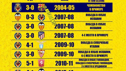 На днях мы вспоминали легендарное дерби Вильярреала против Валенсии, когда Подводники победили, отыгравшись с 0-2, и показали при этом потрясающий по красоте и сочности футбол. Ну а сегодня годовщина ещё одного знаменитого матча из золотого фонда Жёлтой Субмарины: 9 января 2005 года Подводники в матче 18-го тура Примеры со счётом 3-0 разгромили чемпионскую Барселону с Роналдиньо, Деку, Пуйолем и прочими звёздами. Это был выдающийся и по содержанию, и по результату матч. Подводники также выдали феерию...