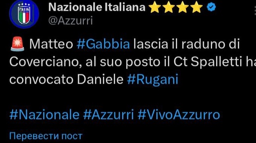 🚨 Маттео Габбия покинул расположение национальной сборной из-за проблем с икроножной мышцей