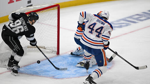 Российский форвард «Лос-Анджелес Кингс» Андрей Кузьменко забил гол в ворота «Эдмонтон Ойлерс» и отдал два результативных паса в своем дебютном матче play-off Национальной хоккейной лиги (НХЛ). Встреча завершилась со счетом 6:5 в пользу «Лос-Анджелеса». Кузьменко забил гол на третьей минуте матче — эта шайба стала самой быстрой для «Лос-Анджелеса» в розыгрыше Кубка Стэнли с 2014 года. Также в составе победителей отметились Куинтон Байфилд (20-я минута), Адриан Кемпе (35), Филлип Дано (38 и 60) и Кевин Фиала (45)...