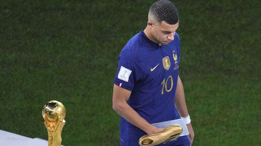 Самое эмоциональное послематчевое фото финала чемпионата мира по футболу: нападающий сборной Франции Киллиан Мбаппе проходит мимо Кубка мира с призом лучшему бомбардиру в руках. Мбаппе получил "Золотую бутсу" как игрок, забивший больше всех (8 голов) на турнире. В финальном матче Мбаппе сделал хет-трик, а потом забил и в серии пенальти...