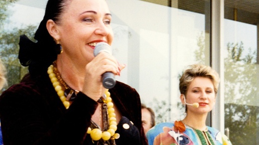 Народная артистка СССР Элина Авраамовна Быстрицкая и дважды Герой Советского Союза космонавт Георгий Михайлович Гречко на одной из международных выставок. Лев Медведев, сентябрь 1993 года, г...