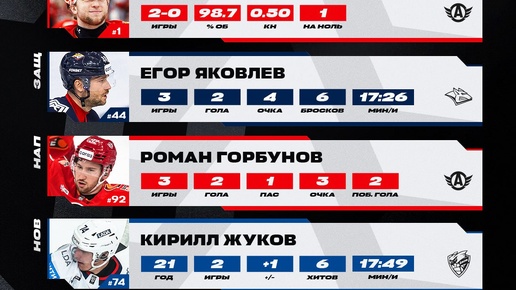 КХЛ представляет лучших игроков 5-й недели сезона 2025/2026.