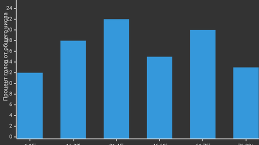 📊 Футбольная аналитика: почему второй тайм результативнее первого? Исследование 1000 матчей показывает интересные закономерности в распределении голов. Разбираемся, почему команды чаще забивают после перерыва и как визуализация данных помогает понять игру глубже. 🔍 Что говорят цифры? Проанализировав 1000 матчей топ-5 европейских лиг (АПЛ, Ла Лига, Серия А, Бундеслига, Лига 1), мы получили чёткую картину: Ключевые выводы: · Второй тайм даёт 58% всех голов · Пик результативности — 46-60 минуты...