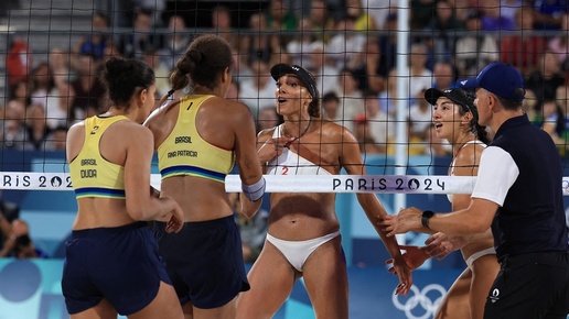 Трогательный момент на пляжном волейболе. Диджей помирил бразильянок с канадками в финале Игр, включив хит Джона Леннона