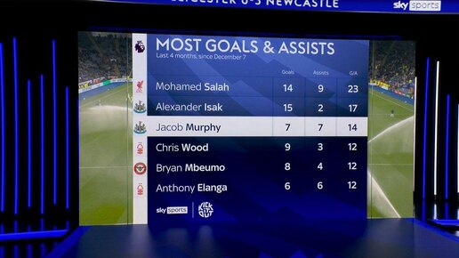Джейкоб Мерфи из "Ньюкасла" — третий лучший игрок в Премьер-Лиге по системе гол+пас с 7 декабря 🔝