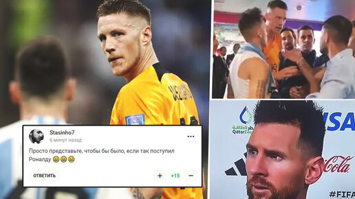 Появилось видео конфликта Лионеля Месси и Ваута Вегорста. Напомним, во время интервью после матча между сборными Аргентины и Нидерландов в четвертьфинале ЧМ-2022 (2:2, 4:3 пен.) Месси сказал Вегорсту: «Че уставился, придурок? Иди отсюда». Во время самой игры между футболистами было несколько стычек. Теперь в сети появилось видео, на котором запечатлены моменты после окончания этой игры. На этих кадрах можно увидеть, что нападающий сборной Нидерландов протянул руку аргентинцу в подтрибунном помещении, но тот отказался от рукопожатия и прошел мимо...