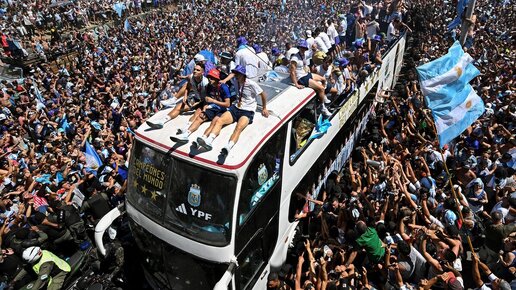 Василий Богданов Победа сборной Аргентины на чемпионате мира свела с ума ее болельщиков, которые ждали заветный трофей с 1986 года. На днях в столице страны встречали любимую команду - миллионы людей высыпали на улицы, мечтая хотя бы издалека увидеть своих героев. Организаторы чемпионского парада явно недооценили масштабы безумия, из-за чего не обошлось без неприятных случаев. О том, как Аргентина на несколько дней погрузилась в счастливый хаос, - в нашем материале. Все началось еще в воскресенье...