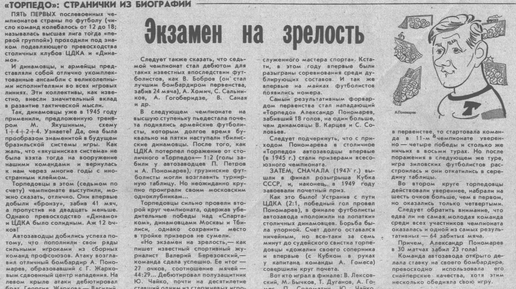 "... - Результативность буксует, её просто нет! Взглянул на табло - там у строчки "Торпедо" пламенел огромный ноль ...". 1988 год, май, 28
