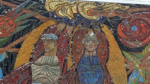 Экспериментальная школы №5 в Донецке, построенная в 1965 году по проекту Иосифа Каракиса знаменита не только новаторским для своего времени архитектурным решением, но и замечательными мозаиками. В предыдущих статьях мы рассматривали мозаичные панно украшающие стены северного и южного крыла школы. Сегодня давайте посмотрим на самую большую мозаику, которая украшает восточный фасад школы. В центре композиции металлург и шахтер, представители двух профессий, связанных с огнем. Шахтер добывает каменный...
