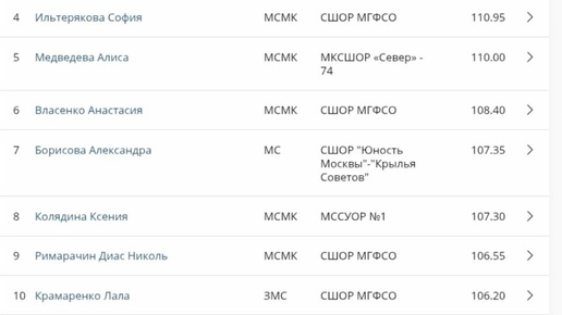 Финал личного многоборья (некоторые гимнастки, которые уже имеют квоту на Чемпионат России снялись с финала многоборья) 🥇София Ильтерякова (СШОР МГФСО) - 120,1 🥈Екатерина Сазонова (СШОР МГФСО) - 116,75 🥉Мария Дмитриева (МГФСО СШОР "Таганка") - 114,45 4. Ксения Колядина (МССУОР №1) - 113,75 5. Алиса Медведева (МКСШОР «Север» - 74) - 112,85 6. Лала Крамаренко (СШОР МГФСО) - 112,8 7. Анастасия Иванова (СШОР МГФСО) - 109,65 8. Глафира Моржухина (ЦГ Ирины Винер) - 108,95 9. Анастасия Власенко (СШОР МГФСО) - 108,5 10. Николь Римарачин Диас (СШОР МГФСО) - 106,95 11. Полина Фролова (МКСШОР «Север» - 74) - 105,95 12...