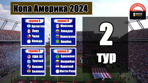 Здравствуйте! Вы на канале «Алекс Спортивный». Сегодня говорим о втором туре Копа Америка. Уже три сборные обеспечили себе выход в плей-офф. Узнаем кто это. Узнаем, кто лучший ассистент. Начинаю обзор с группы А. Таблица. Выйдут из групп только две первые команды. Две последние вылетят. Расписание 3 тура. 30 июня Аргентина - Перу, Канаде достаточно не проиграть Чили. . На вашем экране результаты группы В. Таблица. Расписание 3 тура. 1 июля. Ямайка - Венесуэла, Мексика - Эквадор. . Группа С. Таблица...