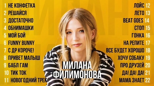 Милана ФилимоноваМилана Филимонова - Пою, танцую, радую вас каждый день ;) Подписывайся на мой Оф ДЗЕН!Канал · 8835Подписаться1:00:51Милана ФилимоноваМилана ФИЛИМОНОВА - ЛУЧШИЕ ПЕСНИ [СБОРНИК]2310 · 4 месяца назад14:51Милана ФилимоноваПРИВЕТ СОСЕД Hello Neighbor #1 Новые приключения и секреты от соседа FFGTV ЛЕТСПЛЕЙ играем с Миланой44,8 тыс · 1 год назад1:03:24Милана ФилимоноваМилана Филимонова - ЛУЧШИЕ КЛИПЫ (60 МИНУТ )821 · 2 месяца назад