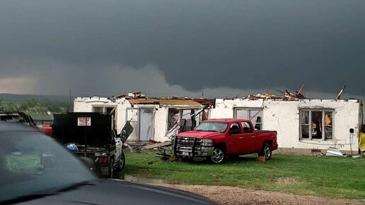 А в Техасе посвежело так, что хоть волком вой. Прилетели опять торнадо, ветер и град. А ведь ещё в начале недели синоптики апокалипсиса об этом предупреждали. И без того разрушенная инфраструктура штата вновь подверглась воздействию стихии. чалось с образования суперячейки возле Амарилло, а затем вызвало ветер со скоростью 109 миль в час в Джейтоне вместе с градом диаметром более 4 дюймов. Й С такой погодой и боевые действия ненужны. Интересно, ураганы и торнадо можно как то сравнить с ядерным боеприпасом в килотоннах...