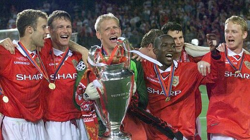Атмосфера в раздевалке "Красных дьяволов" после, наверное, самого захватывающего финала, который выдавал Сэр Алекс Фергюсон и его парни! Моя дата рождения - 12.08.99, но даже я смотрел этот матч несколько раз и каждый раз удивлялся как в первый, как же все таки так вышло!? "Как эти победили? А эти проиграли?"Просто фантастика...