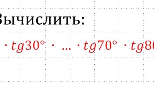 Добрый день! Сегодня мы разберем несложную задачу, которая на первый взгляд кажется невыполнимой. Заметим, что tg10° × tg80° = tg10° × tg(90°-10°), tg20° × tg70° = tg20° × tg(90°-20°), tg30° × tg60° = tg30° × tg(90°-30°), tg40° × tg50° = tg40° × tg(90°-40°) Вспомним полезное тригонометрическое свойство...