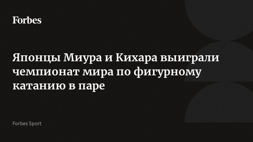 Японцы Рику Миура и Рюичи Кихара одержали победу в чемпионате мира по фигурному катанию в парах. Дуэт впервые в истории своей страны завоевал золото в этой категории. Миура и Кихара набрали 222,16 баллов. Серебряным призерам стала американская пара Алекса Книрим и Брэндон Фрейзер, получившая 217,48 баллов. Бронзу турнира забрал итальянский дуэт Сары Конти и Николло Маччи – 208,08 баллов. Чемпионат мира по фигурному катанию стартовал 22 марта в японской Сайтаме. Турнир продлится до 26 марта. В четверг, 23 марта, пройдет турнир среди мужчин в коротких программах...