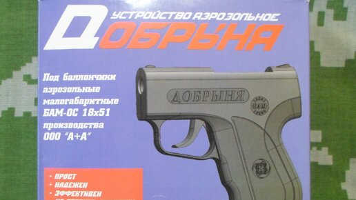 Приветствую любителей самообороны и всех тех, кто только начинает интересоваться данным вопросом! Сегодня у нас в руках аэрозольное устройство «Добрыня», выполненное в форме пистолета. Производитель его упаковал в достаточно красивую коробку, укомплектовав паспортом-инструкцией и пятью переходниками для БАМов калибра 13х50. Родной же калибр пистолета 18х51. Но обо всём по порядку. Добрыня наш, отечественный продукт, фактически не имеющий зарубежных аналогов! Произведён тульской компанией А+А, которая широко известна на рынке доступных средств самообороны, не требующих каких-либо разрешений...