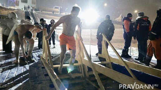 Нижегородцы отметили Крещение традиционным купанием в проруби. Всего в регионе было оборудовано 66 купелей, семь из них - в Нижнем Новгороде. Вы ещё не с нами в Telegram? Подписывайтесь, всё самое интересное тут! Согласно предварительным опросам, из 15% горожан, собиравшихся сделать это, 4% готовились делать это впервые. Во всех точках дежурили сотрудники МЧС России и других экстренных служб. Фото: Максим ГерасимовФотобанк Фото: Максим ГерасимовФотобанк Фото: Максим ГерасимовФотобанк Фото: Максим...