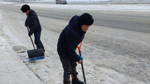 В Центральном районе Кемерова очищают от снега и наледи остановки общественного транспорта