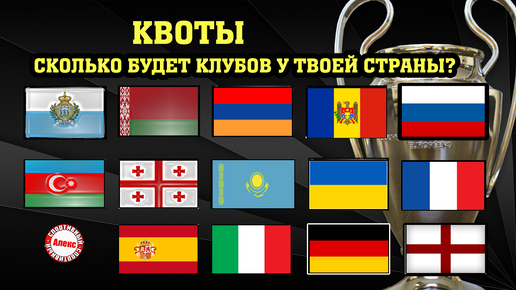 **** Сколько клубов получит Россия, Казахстан, Беларусь, Украина и другие страны в следующем сезоне Лиги Чемпионов, Лиги Европы и … "эх", Лиги Конференций. **** Если вы живёте в Сан-Марино, то вам повезло. ***** У Беларуси - 4 клуба в следующем сезоне. **** Азербайджан. Такая же схема. **** Грузия – 4 клуба. **** Армения – 4 клуба. **** Молдова – 4 клуба. **** Казахстан - 4 клуба. **** Украина – 5 клубов. **** Россия – 5 клубов. **** Франция – 6 команд...