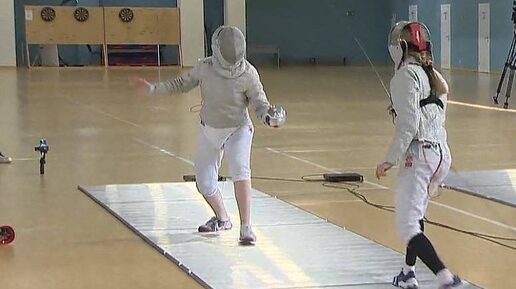 Но за неделю до этого спортсмены прибыли во Владивосток, чтобы пройти акклиматизацию и подготовиться к соревнованиям. Как проходили тренировки юных саблистов... Пара выпадов — атака — и победа за спортсменом справа. Неопытному зрителю тяжело проследить, в какой момент сабля коснулась оппонента. Понять можно по загоревшемуся фонарю. Красный цвет — очко бойцу слева, зеленый — справа. Для победы нужно коснуться рабочей области — маски или куртки. А удары считаются с помощью электричества. Александра...