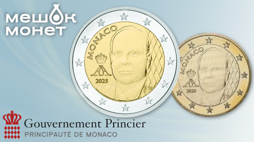 Новые монеты Монако 2025 с портретом князя Альбера II
